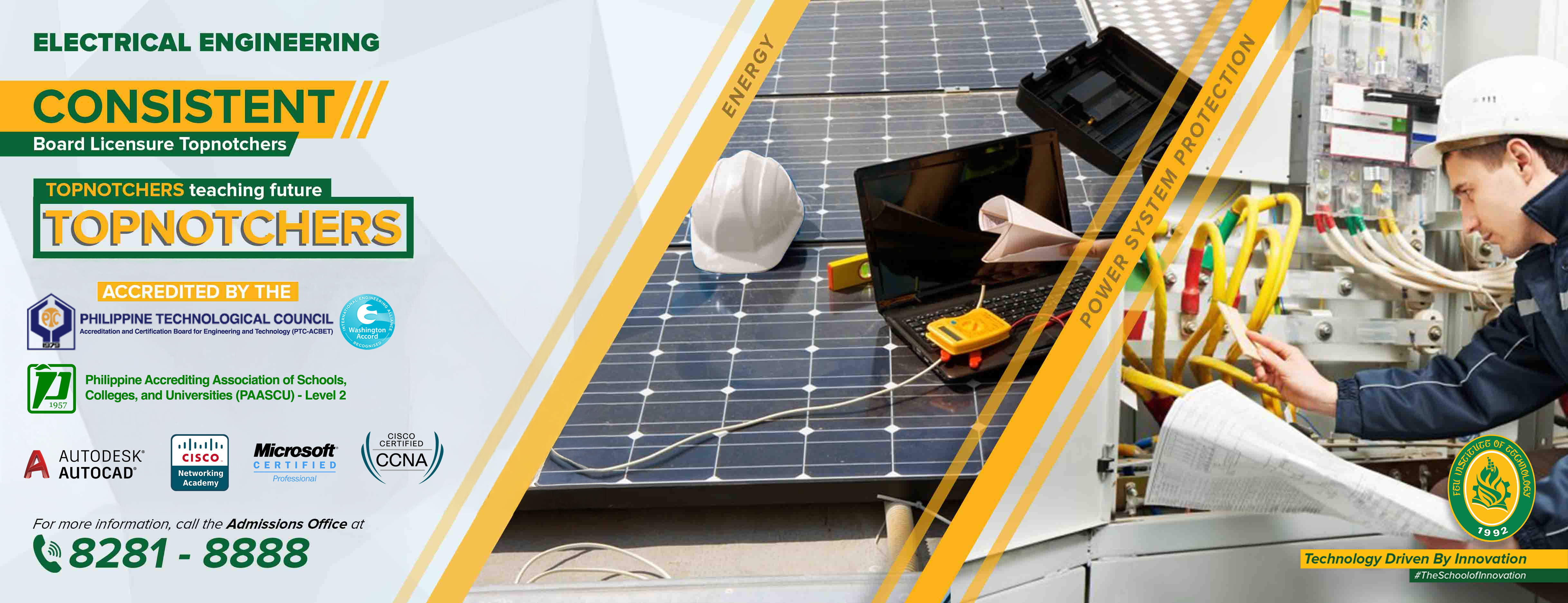 The field of Electrical Engineering deals with the generation, transmission, distribution and utilization of electricity. It covers topics such as industrial and power electronics, electrical and instrumentation design and construction, machine control and automation, operations and maintenance of facilities, power systems operation, economics and protection, industrial and power plant engineering. Electrical Engineering students of FEU Institute of Technology are expected to learn and to experience cutting-edge design software in electrical and power systems design. They will also experience hands-on building design, wiring and installation, motor control design and wiring. With knowledge of electronics, they are expected to excel in the fields of instrumentation, automation and controls design. Reinforced with subjects on engineering and project management, safety engineering, professional ethics and entrepreneurship, the students are trained to be the best and highly sought professionals in the industry.
